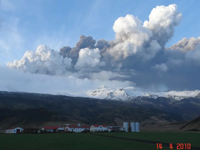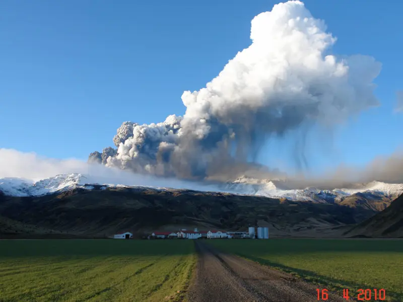 Sixteen signs have been put up at the Eyjafjallajökull view point and each sign has one photo from the 2010 eruption of Eyjafjallajökull and information on the rock next to the sign. To read further about each photo, please select a link below.