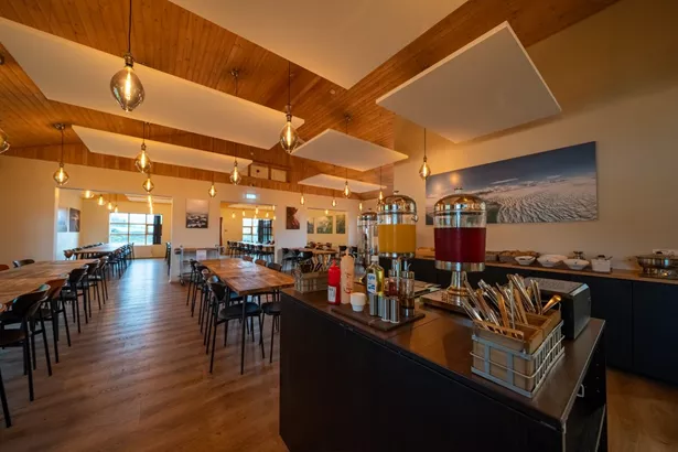 This peaceful yet cozy countryside hotel offers guests a warm and inviting base from which to explore the geological wonders of Katla Geopark. With a mix of comfortable rooms and charming cottage-style units tucked throughout the grounds, the hotel blends rustic Icelandic character with modern amenities. In fact, you might even find a few photogenic sheep waiting for you!