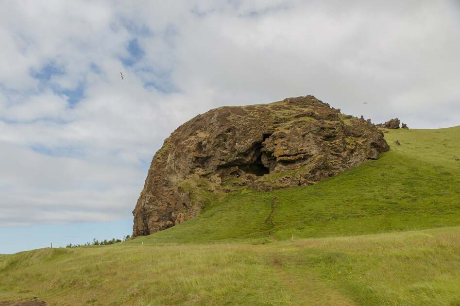 Dyrhólaós is 4.8 km estuary near Vik í Mýrdal. The extensive mudflats, which are unique in south Iceland are an important ecosystem and breeding ground for many migratory birds. Loftsalahellir Cave is a rather large and unusual cave made of tuff rock on the southwest side of Geitafjall Mountain which sports a variety of basalt formations and lush vegetation on its slopes. The cave served as an assembly place for the farmers in Mýrdal and nearby is Gálgaklettur or ‘gallows rock’. The name suggests that the execution of criminals was performed there early in the last century, although no records to confirm this have ever been found.