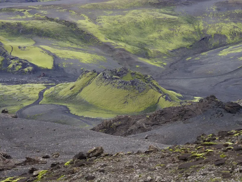 Lakagígar or Laki Craters is a 27 km long eruptive fissure consisting of 130 giant craters on the southwest side of Vatnajökull. An 8 month long eruption, which lasted from June 1783 til February 1784, was nothing short of catastrophic: 50%- 80% of livestock and 25% of the Icelandic population died.
