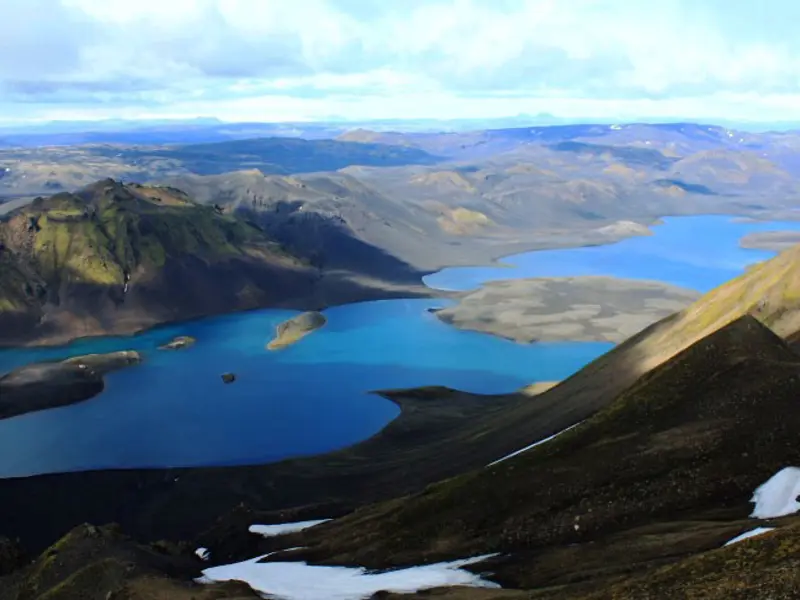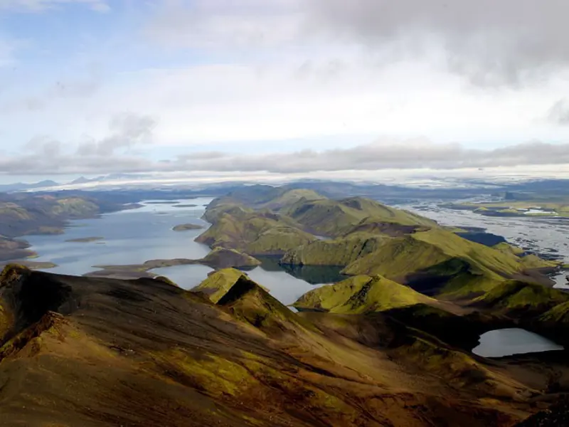 Langisjór, one of Europe’s most beautiful and pristine highland lakes, is tucked in between the beautiful Tungnárfjöll and Fögrufjöll Mountains at the western edge of Vatnajökull Glacier. Measuring 20 km long and 2 km wide in some places, the lake is 27sq km and 75m at its deepest, and lies some 640m above sea level. The view around the lake is magnificent and at southern end of the lake stands Sveinstindur (1090 m) which is considered by many to be one of the best views of the panorama of the surrounding area. Views over Lakagígar, Skaftáreldahraun, Öræfajökul and Hekla are possible in clear weather.