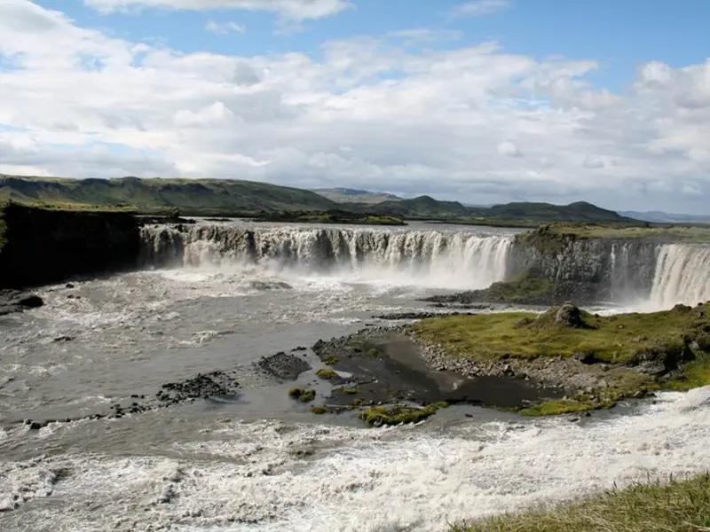 Glacial outburst floods (Icelandic: jökulhlaup) are common in the Skaftá River and as a general rule it floods every two years. The floods result in much water running all over around lowland areas, with tremendous deposition. The size of Skaftá River floods is variable, but the flow can get up to 1500 m³/s by Skaftárdalur during the largest floods. For comparison, the largest floods in Iceland’s history have been during Katla’s eruptions with their maximum flow rate estimated to reach up to 300,000 m³/s. Floods in the Skaftá River originate at Skaftárkatlar (Skaftá Depressions) which are beneath Vatnajökull Glacier, northwest of Grímsvötn Volcano. The floodwater is meltwater from geothermal energy which builds up in the depressions and emerges when the depressions fill up; the glacier then rises up and the water forges a path for itself under the ice.